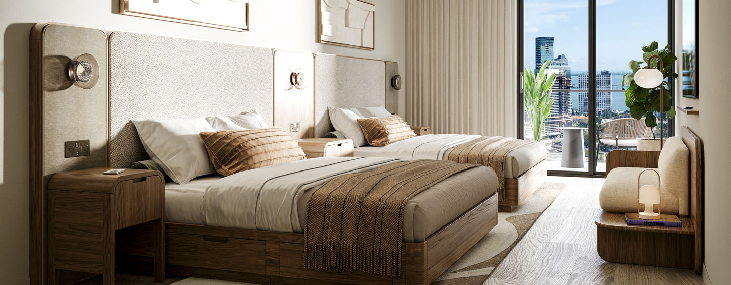 Domus Brickell Center is a modern residential building with short term rentals. This innovative condo designed by MC+G Architecture offers 579 residences ranging from studios to 2 bedrooms. Enjoy a spacious residence with spectacular pleasant views of the luxurious Brickell and Downtown buildings and the entire Miami skyline.