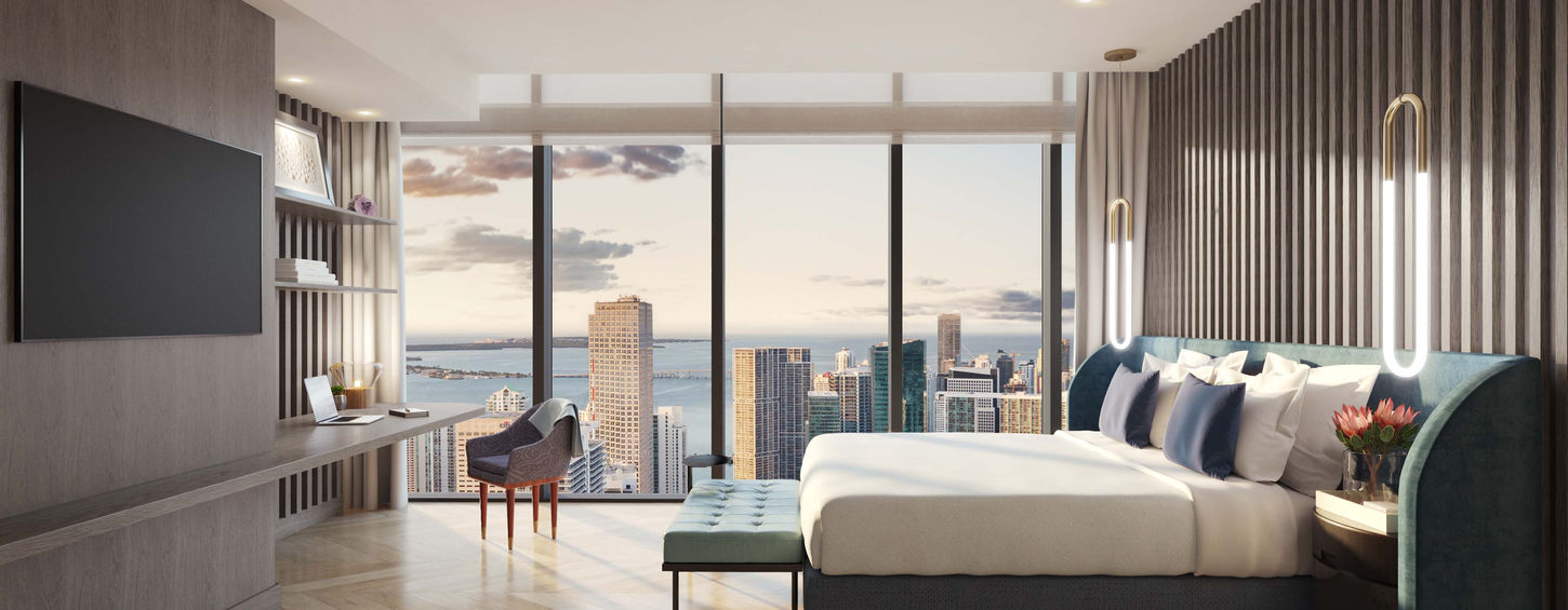 At 1,049 feet tall, Waldorf Astoria Hotel and Residences Miami is Miami’s tallest tower and the city’s first supertall skyscraper. The residences offer dramatic views of Biscayne Bay, the Port of Miami, Brickell Avenue, Downtown Miami, Key Biscayne, and South Beach. Its prime location allows residents to live just minutes from Miami Worldcenter, as well as numerous cultural attractions, arts institutions, tourism hubs, and fashion destinations.